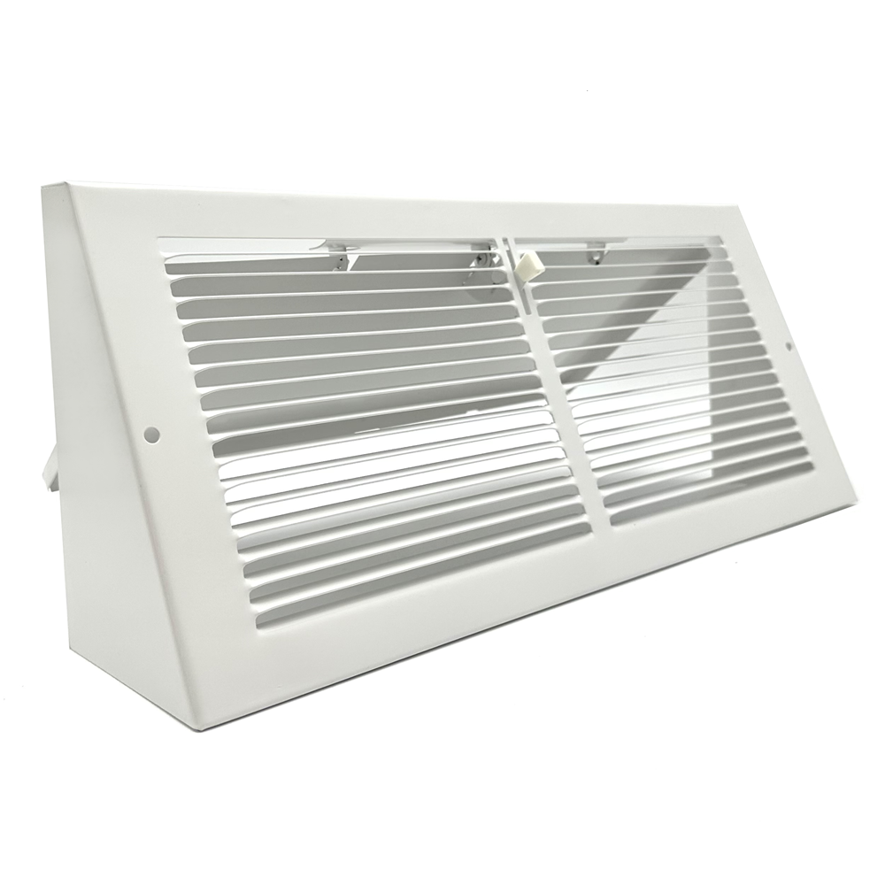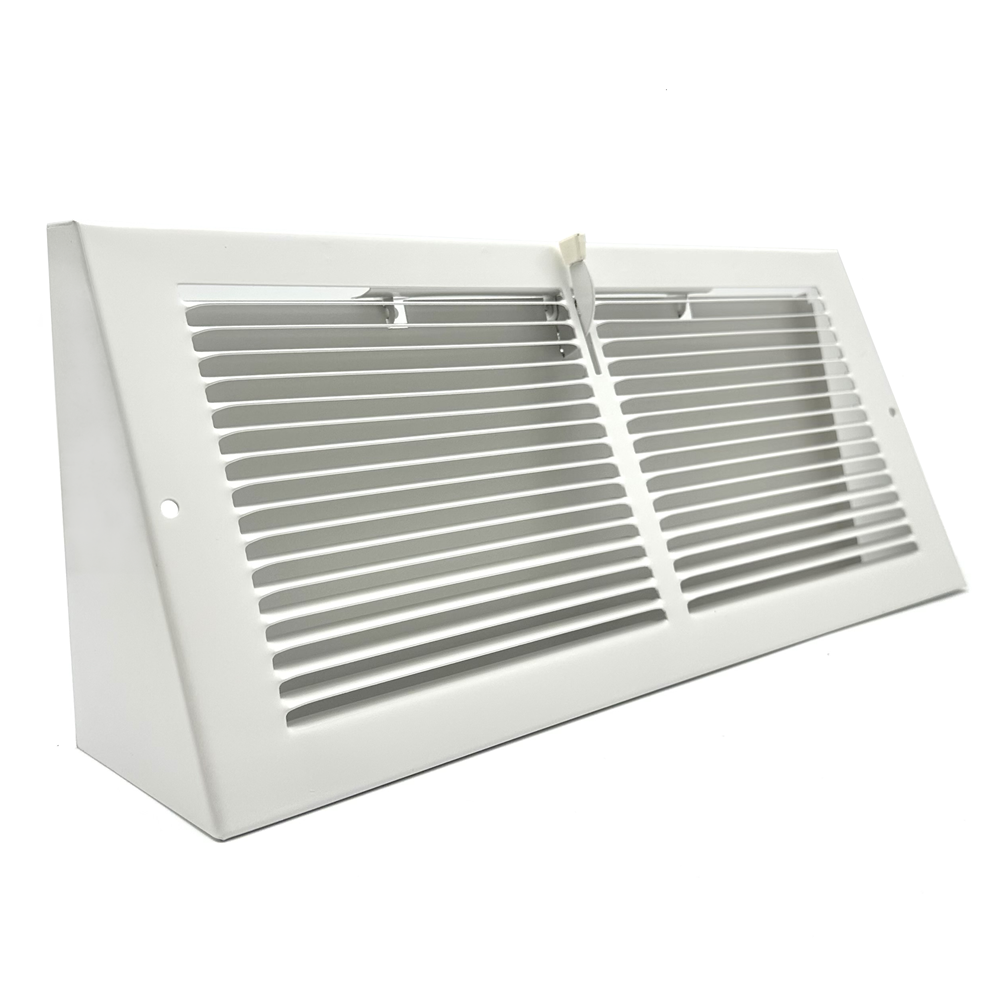 Order a baseboard register with damper for easy air flow control. These metal vents are fit for both commercial and residential use. The style of baseboard register with damper is a timeless design, sure to blend in with almost any decor. Metal vents are durable and will last for years. There are fins on the baseboard register with damper that are spaced 1/3 inch apart and set at a 20 degree slant. The damper on the metal vents is a swinging plate damper. Ordering a baseboard register with damper allows for maximum comfort because you can use the damper to open and close the air duct. The metal vents are constructed of stamped steel with a powder coat finish to prevent rusting.