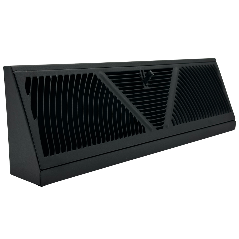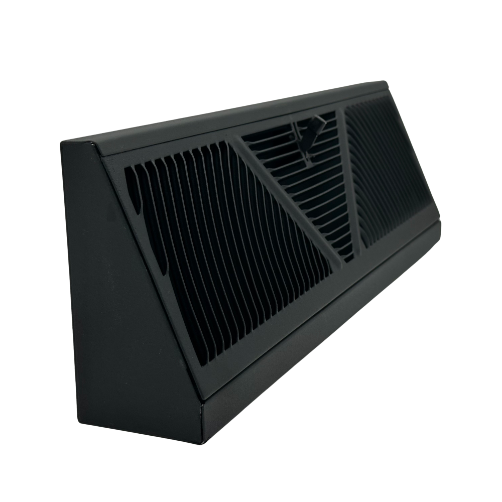 Shoemaker Baseboard Registers are now available in a stunning Black finish. These baseboard vents have a hard to find extended height of 5.5" and project out from the bottom 2.75". It's standard 18" length is perfect for most homes and it is constructed of heavy duty steel. It's sunburst design pattern allows for air to flow in 3 different directions to push air all throughout the room! Installation is made easy by popping out the faceplate, installing it to the wall with any household screws and then popping the faceplate back into place. Screws are not included.