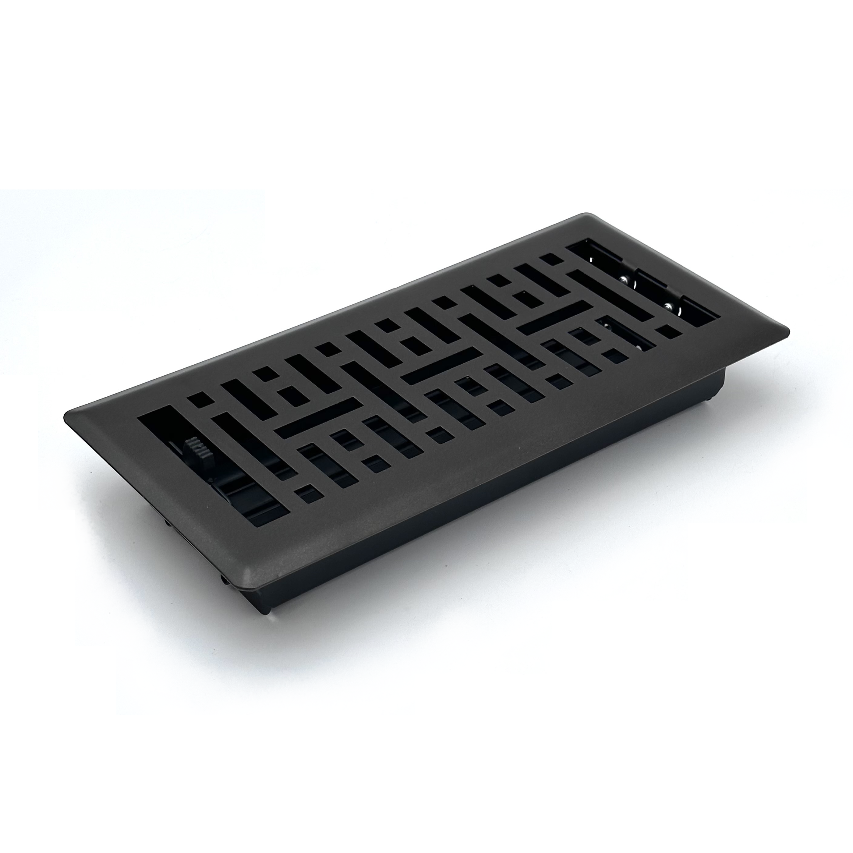 These Sierra Grates Metro Floor Registers have a beautiful Metallic Bronze Finish and are made of 100% steel. This product is designed to withstand foot traffic and has an adjustable damper that allows you to open and close airflow to your comfort level. The faceplate features a beautiful Metro design and the vent is made to fit a hole size that measures 2" x 12". The faceplate size is 1.5" larger than the listed size.