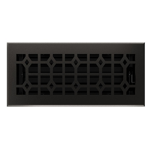 Imperial's Cast Iron Templar Floor Registers have an adjustable damper that allows you to open and close off airflow to your comfort level. These registers drop into the floor about 1 1/4" and have a unique Templar design. The faceplate is 4mm thick and has beveled edging giving it a nice flow from faceplate to floor to avoid any tripping or toe stubbing hazard. It's textured matte black finish helps protect against scratches, scuffs and rust. These registers are sure to go well with any decor style and any kind of flooring!