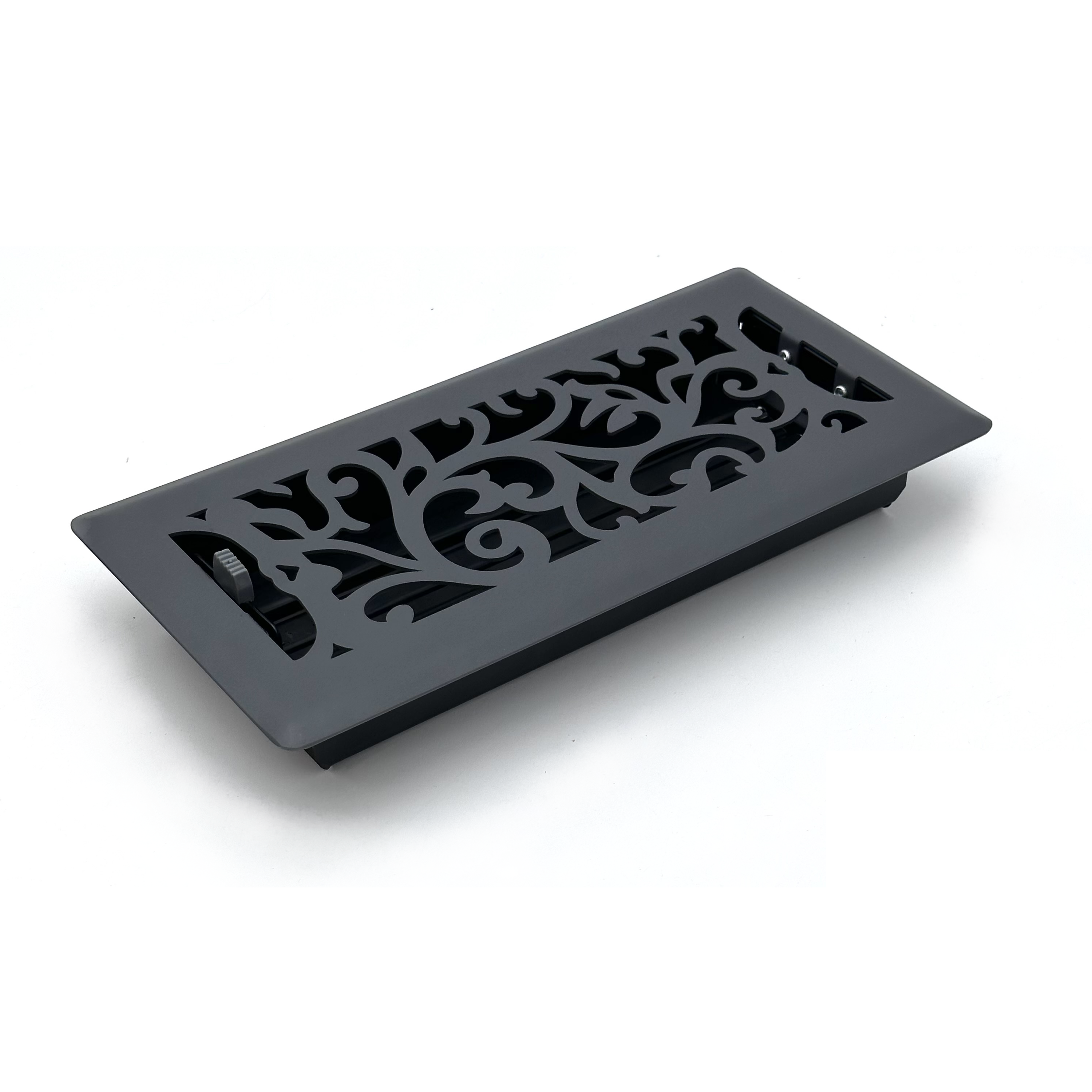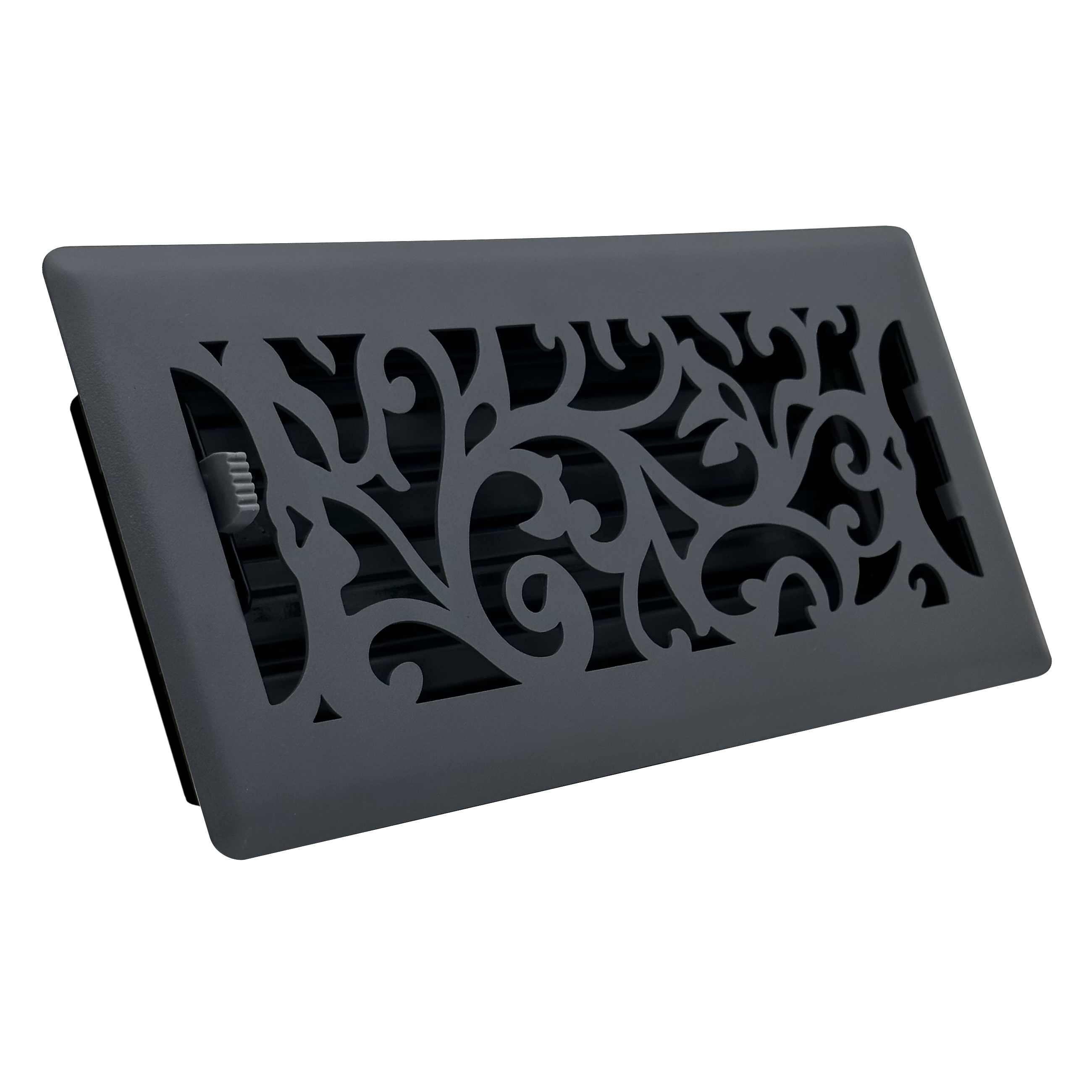Sierra Grates Floor Register - 4 x 10 Floral Style Graphite Grey Finish