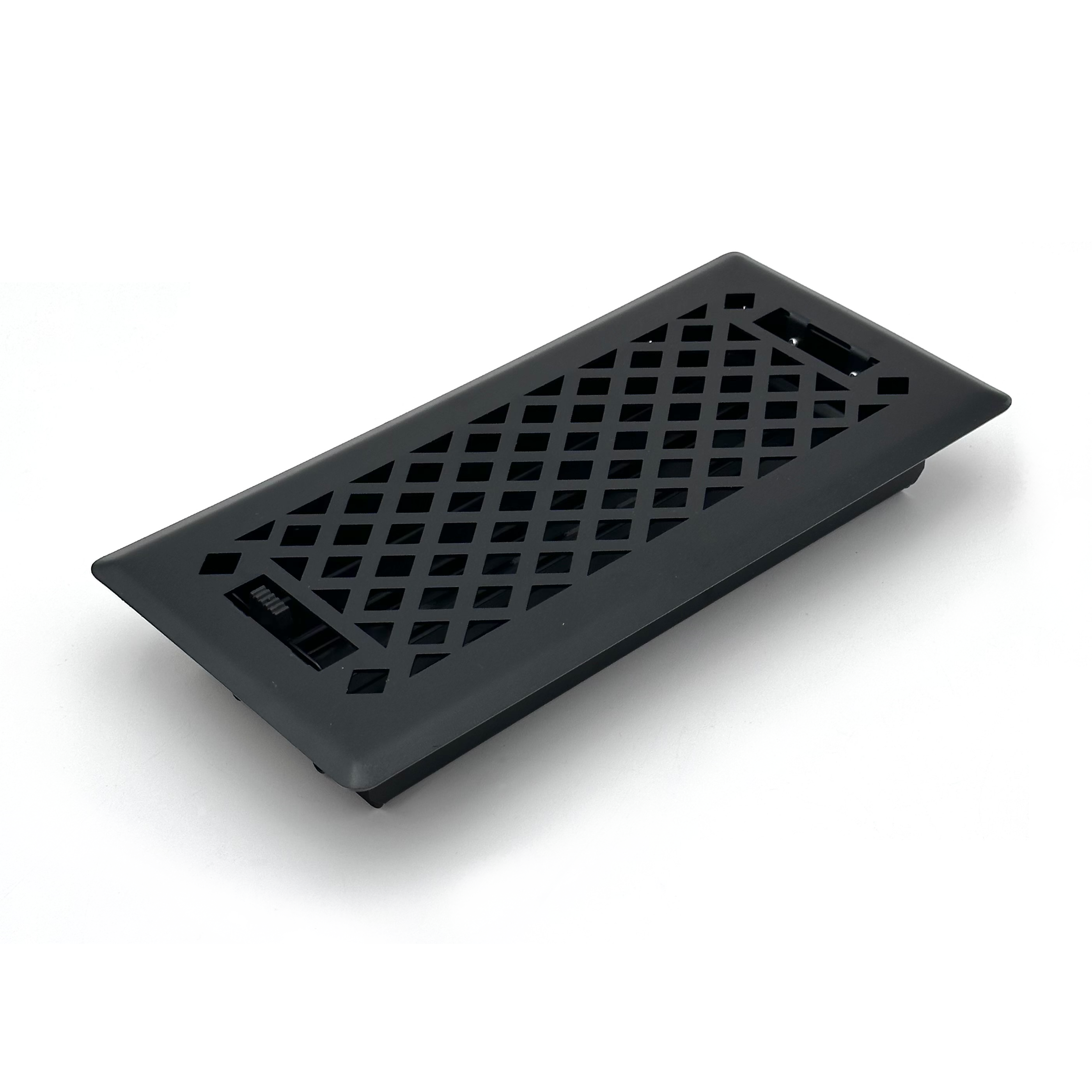 These Sierra Grates Lattice Floor Registers have a beautiful Cast Iron Black Finish and are made of 100% steel. This product is designed to withstand foot traffic and has an adjustable damper that allows you to open and close airflow to your comfort level. The faceplate features a beautiful Lattice design and the vent is made to fit a hole size that measures 4" x 10". The faceplate size is 1.5" larger than the listed size.