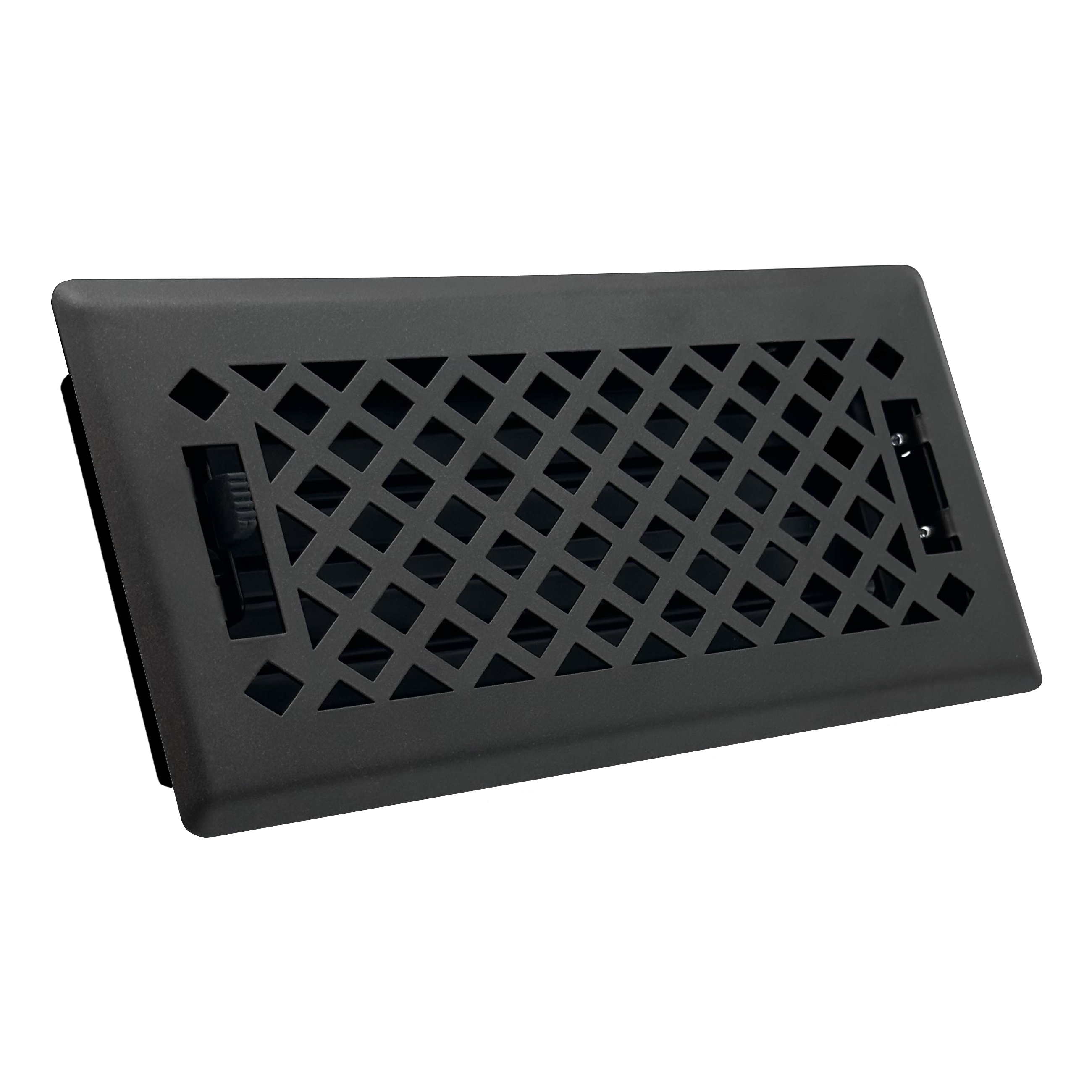 These Sierra Grates Lattice Floor Registers have a beautiful Metallic Bronze Finish and are made of 100% steel. This product is designed to withstand foot traffic and has an adjustable damper that allows you to open and close airflow to your comfort level. The faceplate features a beautiful Lattice design and the vent is made to fit a hole size that measures 4" x 10". The faceplate size is 1.5" larger than the listed size.