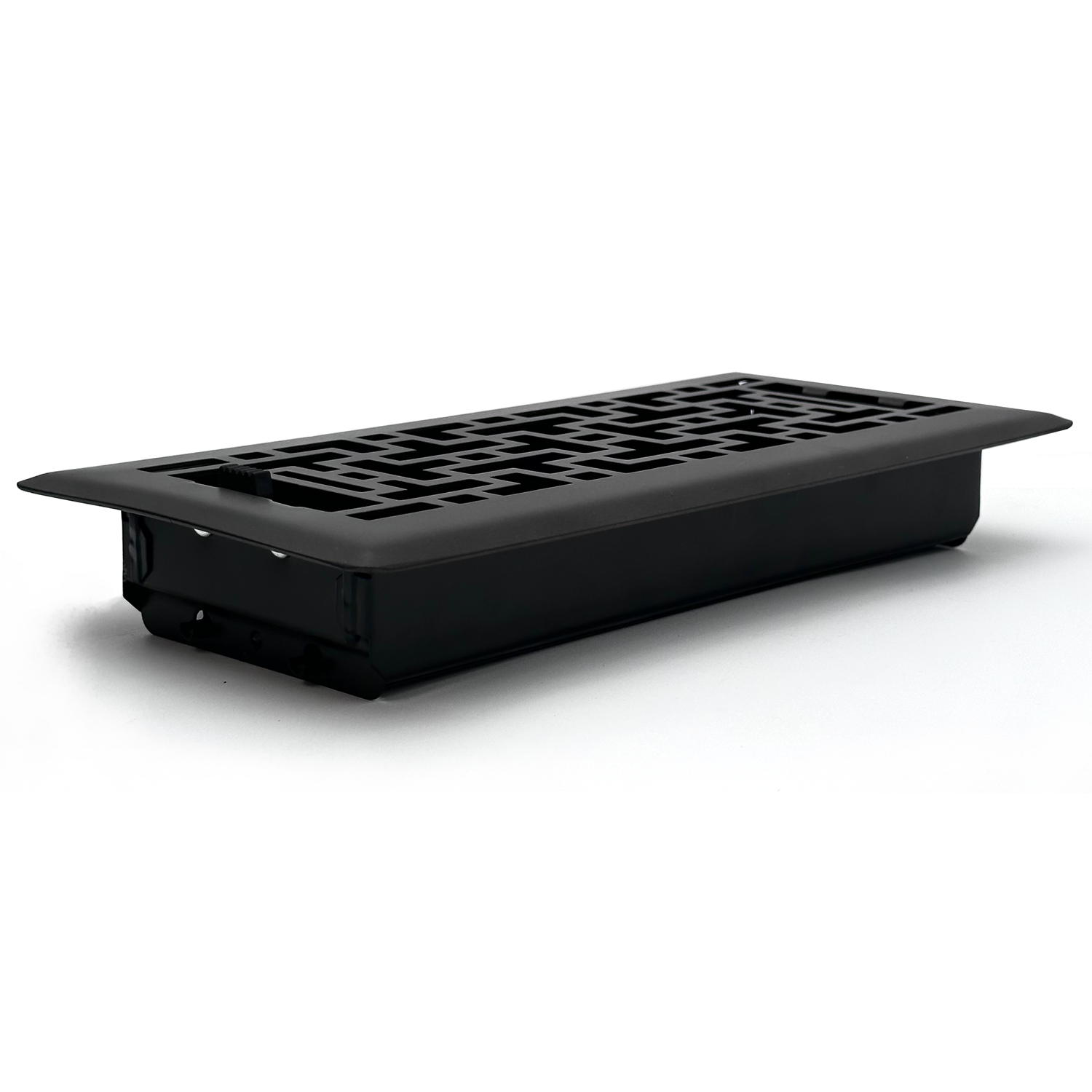 These Sierra Grates Oriental Floor Registers have a beautiful Metallic Bronze Finish and are made of 100% steel. This product is designed to withstand foot traffic and has an adjustable damper that allows you to open and close airflow to your comfort level. The faceplate features a beautiful Oriental design and the vent is made to fit a hole size that measures 4" x 10". The faceplate size is 1.5" larger than the listed size.