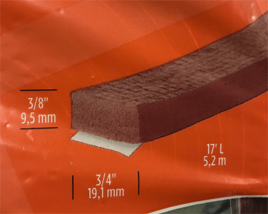 - This large width foam tape is 3/4 inch wide - 3/8 inch thick - 17 foot section