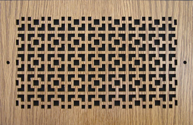 These decorative air return wall grilles by Pattern Cut, Inc come in 26 different designs. They are manufactured from 100% laminated birch hardwood with a veneered face. You can add style to any room with a Pattern Cut decorative air return wall grille. You have your choice between three veneers: oak, maple or cherry. If you anticipate on painting the grille, the manufacturer recommends the maple veneer. These decorative air return grilles, however, can be painted to match your walls or stained to match your trim. They come sanded and ready for you to finish however you'd like. On top of the 56 different sizes these wall grilles come in, Pattern Cut, Inc also offers custom sizes. Just call 1-800-504-5989 for a quote.