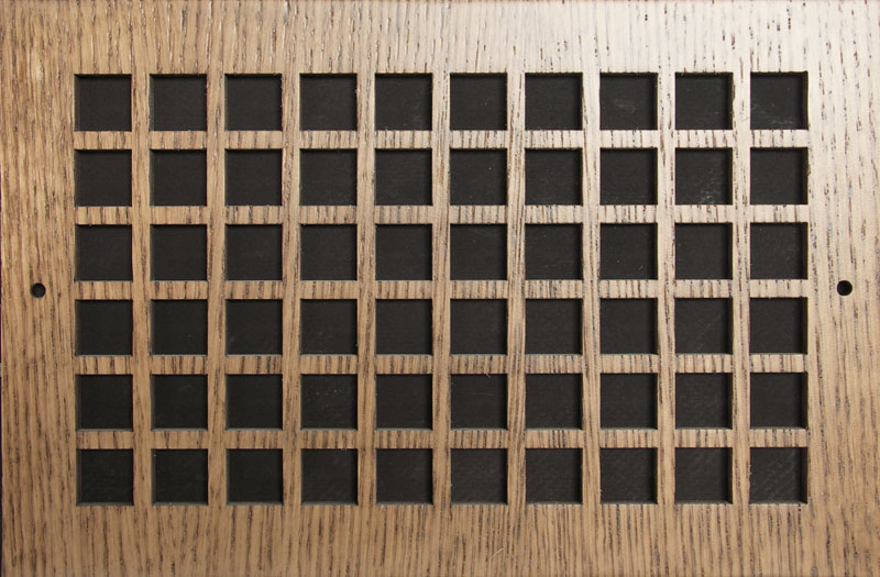 Pattern Cut wood design return air grilles are a beautiful addition to any room. These return air grilles come in 26 different wood designs. These grilles are shipped sanded and ready to be finished. They can be painted to match your walls or stained to match your trim. They are constructed from 1/4" Birch Ply and have a veneer face of either Cherry, Oak, or Maple. These versatile grilles come in 56 sizes. They are also available in custom sizes and shapes, just call 800-504-5989 for a quote.