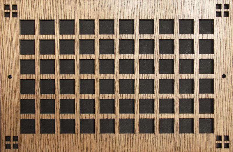 Pattern Cut wood air return decorative wall grilles can be cut to any size or shape you need. We offer 56 sizes but if you don't see your size listed, call us at 800-504-5989 for a quote. You can stain or paint these wood air return decorative wall grille to match your walls or trim. They are cut from Baltic Birch hardwood ply with Oak, Maple, or Cherry furniture grade face veneer. If you plan on painting the grille, the manufacturer recommends you select the maple veneer. You also have the option of purchasing the Adjustable Damper which comes in 21 of the Pattern Cut size. This damper allows you to adjust the airflow of the grille with a screw driver.