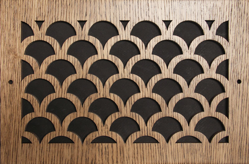 Pattern Cut decorative wood return air grilles are a great alternative to your old rusty steel grille. These decorative wood return air grilles come in 26 different designs and can be painted or stained to match your decor. These grilles are cut from 1/4" thick Birch hardwood ply. They have a furniture grade veneer face of either Oak, Maple, or Cherry. These grilles are available in 56 different sizes. Custom sizes and shapes are also available. If you don't see your size listed in the drop down menu, call us at 800-504-5989 for a quote.