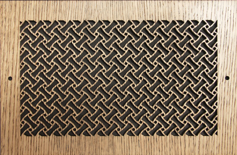 Pattern Cut wood return decorative wall grilles can accentuate any decor. These versatile wood return decorative wall grilles come in 26 different designs and can be stained to match your trim or painted to match your walls. They are cut from 1/4" thick Baltic Birch hardwood ply with a furniture grade face veneer of either Cherry, Maple, or Oak. The manufacturer recommends you select the maple veneer, if you anticipate on painting your grille. We offer these decorative wall grilles in 56 sizes. If you do not see the size or shape you need listed, call us at 800-504-5989 for a quote. We also offer an Adjustable Damper which works in conjunction with 21 sizes of Pattern Cut wood return grilles. This damper allow you to control the air flow of the grille with a screw driver without having to to disassemble the grille.