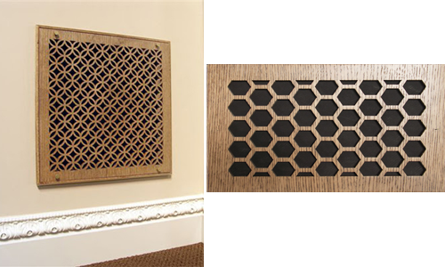 Replace your old, rusted out metal filter grille with the beautiful Pattern Cut Filter Grilles! The wood on these grilles is made from 100% laminated birch hardwood with a veneered faceplate. It is your choice between three different veneers; oak, maple or cherry. If you are planning on painting the grille the manufacturer does recommend you go with the maple veneer. These come sanded ready for you to finish however you'd like. Not only do we have 56 different sizes but the manufacturer is also able to make custom sizes! Just reach out via email or by phone using 1-800-504-5989 for a quote.