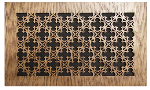 Pattern Cut decorative Filter Grilles accentuate any room. They can be painted to match your walls or stained to match your trim. These filter grilles come in 26 different designs for you to choose from. They also come in 56 sizes, if you don't see the size you need listed in the drop down menu, call us at 800-504-5989 to get a quote. These wooden grilles are measured by the size of the duct opening in your wall. Measure your return air duct opening width x height. For example, if your duct opening is 10" wide x 6" high you would order a 10 x 6 return air grille. The actual faceplate of the grille will then be 2" larger (in this example the faceplate will be 12" x 8"). These grilles are constructed from a 1/4" thick Baltic Birch ply. For the face of the return air vent, you have the option of choosing between Maple, Oak, or a Cherry Veneer. If you will be painting the grille, the manufacturer recommends you select the maple veneer. They are shipped to you sanded and ready to be finished however you'd like.